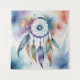 Se trata de una pintura acuarela de un soñador con flores y plumas de colores. El fondo es azul claro con toques de color. Esta imagen podría interpretarse de muchas maneras diferentes. Podría verse como una representación del poder de los sueños, la importancia de la naturaleza o la belleza del mundo que nos rodea. También podría verse como un símbolo de protección, esperanza o nuevos comienzos. Se dice que las plumas atrapan los malos sueños y los atrapan en la web, mientras los buenos sueños pasan y llegan al soñador.