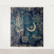 Patrón floral oro de moda y mágico dreamcatcher mandala, con una colección de plumas tribales, flores de mandala, flores geométricas, la luna, el sol y las estrellas, círculos, puntos, cuadrados, triángulos, zigzag chevron, formas geométricas, una mandala con ojo de protección, hecha con puntos dorados y plateados brillando purpurina chispeante imagen mística, sobre una medianoche , fondo de resplandor estrellado de gradiente azul oscuro. Este moderno, místico, tribal, de moda, ilustracion de fantasía, de diseño femenino bohemio, es perfecto para el uso diario, la decoración de casa, las celebraciones y la decoración temática de los días especiales.