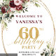 Tapiz Dreamy Boho Burgundy Floral Gold 60th Birthday