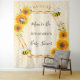Tapiz elegante y divertido para baby shower de verano. Fondo amarillo y blanco con patrón de panal de abeja. Neutral en cuanto al género, para celebrar a una bebé o un bebé. Con un marco geométrico dorado falso. Decorado con girasoles amarillos y naranjas rústicos pintados con acuarela y abejas felices. Con el texto: "Mom to Bee" y el nombre de la madre. Personaliza y agrega el nombre de la futura mamá y una fecha. Se puede utilizar como decoración de pared para la ducha de la novia o como telón de fondo para fotos.