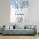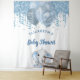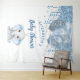 Para una elegante ducha de bebé. Un fondo blanco chic. Decorado con gotas de brillo falsas, aspecto de pintura goteante, brillo, serpentinas de fiesta, globos de colores azul y plata y un lindo elefante bebé niño. Personaliza y añade el nombre y una fecha. Se puede utilizar como pancarta de bienvenida, decoración de pared para la ducha de bebé o como telón de fondo para fotos.