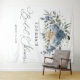 Elegante tapiz floral en azul polvoriento y champán — perfecto para decorar la pared de una fiesta de despedida de soltera o como acento de telón de fondo.