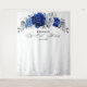 Elegante tema azul real blanco plateado ducha de novia fondo de foto / accesorio de cabina de fotos con elegante ramo de flores de rosa de color azul real, azul marino, plateado, capullos de flores blancas puras y hojas de eucalipto verde salvia. Por favor, contácteme para cualquier ayuda en personalización o si necesita cualquier otro producto con este diseño.