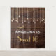¡Usa este divertido tapiz de personalizados como telón de fondo para tu fiesta de dulces dieciséis cumpleaños "cabina de fotos"! Atrapa a sus amigos con una sonrisa y una pose en su fiesta de cumpleaños con este divertido diseño con luces de cuerda sobre un fondo de madera y su propio nombre. Fácil de personalizar con su propio nombre y edad. Diseño de T.K. Goforth