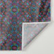Un patrón vibrante y simétrico con una intrincada gama de colores que incluye el azul profundo, el violeta brillante y el verde vivo crea un efecto caleidoscópico. El diseño está densamente abarrotado, formando un motivo geométrico hipnotizante y repetitivo.