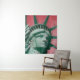 La obra de arte original de ZoeSPEAK en este Tapiz de Muro muestra la cara de la libertad, la Estatua de la Libertad cerca, su retrato pintado en la pared de ladrillo de un edificio, una mujer orgullosamente proclamando libertad, igualdad y fraternidad en la tradición del país que dio la Señora Libertad a Estados Unidos.