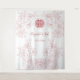 Este telón de fondo boda chino presenta una rama de floración de cerezo de línea rosa y un polvoriento símbolo de doble felicidad sobre un fondo blanco. Texto de bienvenida en un guión manuscrito elegante.