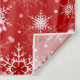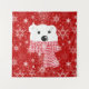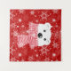 Rompecabezas de oso polar con una bufanda rojiza sobre un fondo rojo con copos de nieve blancos.