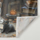 El fantasma del tapiz de Halloween de Ember Hollow con cita poética enclavado en una sala rústica donde las hojas de otoño pasan a la ventana, una figura fantasmal se sienta calladamente junto al fuego, envuelto en una sábana blanca y un silencio suave. El hogar de piedra resplandece con la luz de las velas y el calor, lanzando parpadeantes a través de libros antiguos, recuerdos enmarcados y una única calabaza tallada. Un gato negro con ojos brillantes mira desde las sombras, su mirada fija y sabia. El aire se respira con el silencio de octubre, donde el confort y el misterio se mezclan como el humo.