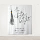 Celebra tu graduación con estilo con este divertido y moderno telón de fondo fiesta que presenta el ilustracion a mano de un tassel negro con un texto de tipografía que dice "el futuro es brillante".
