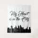 Modernos horizontes en blanco y negro y paisajes urbanos tapicería con la frase "mi corazón está en la ciudad".
