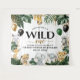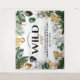 El diseño presenta vegetación de palmeras de jungla y hojas de plátano decoradas con globos de oro, negro y verde impresos. Los diseños de los globos también incluyen confetti falso de color oro. La plantilla también incluye jirafa de bebé, rinocerontes, elefantes, leones, cebra, hipopótamo y acuarelas perezosas para un tema de safari. Uno salvaje está impreso en fuentes modernas y modernas.