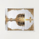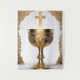 He aquí el "cáliz de la divinidad", una copa de oro magnífica que se erige como testamento de reverencia espiritual y admiración. Sus intrincados diseños y la prominente cruz en lo alto de su ápice sugieren un significado sagrado, posiblemente aludiendo al legendario Santo Grial. La reflexión del cáliz sobre la superficie pulida por debajo de ella se añade a su encanto místico, mientras que los elementos dorados-marrones ornamentados en el fondo enmarcan esta majestuosa reliquia en un halo de grandeza. Ideal para un producto Zazzle, esta imagen encarna la esencia de la búsqueda divina y la devoción atemporal