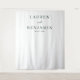 This wedding backdrop features a minimalist design with a clean, centered layout on a plain white background. The typography combines bold serif fonts for the names and a delicate cursive script for "and," creating an elegant contrast. The monochromatic color palette of dark hues against the white enhances readability and sophistication, making it perfect for formal celebrations. Its classic style conveys timelessness and refinement, ideal for significant announcements or events.