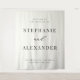 Style keywords: Old money wedding, serif wedding sign, minimalist wedding décor, ivory fabric banner, classic wedding typography, elegant wedding backdrop, timeless wedding aesthetic.