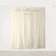 This elegant wedding backdrop features a minimalist design with vertical pinstripes in soft cream and light beige tones, creating a subtle yet sophisticated texture. The typography is the focal point, showcasing a flowing script font for the main heading paired with a clean serif font for added refinement. The ample negative space around the text allows it to stand out gracefully against the striped background, conveying a timeless and classic aesthetic perfect for formal occasions. Ideal for weddings or other celebratory events, this design exudes calmness and sophistication through its restrained color palette and graceful typeface.