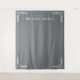 This elegant wedding backdrop features a minimalist design with a muted gray background, creating a sophisticated and timeless atmosphere. The layout includes stylish leaf motifs in the corners, adding a touch of classic charm to the overall look. Customizable text fields allow for personalization with names and dates, making it perfect for your special day. The clean typography and balanced composition ensure that this backdrop is both versatile and visually appealing, ideal for capturing beautiful memories at your wedding celebration.