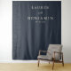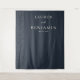 This elegant wedding backdrop features a deep navy blue background with a vertical column of subtle white dots on the left side, creating a refined texture. The design includes customizable text in a clean serif font, centered for balance and clarity, perfect for highlighting names and dates. Its minimalist style conveys sophistication and anticipation, making it ideal for formal celebrations. The cohesive color palette and crisp digital print ensure readability and a modern aesthetic, suitable for any significant event.