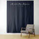This elegant wedding backdrop features a minimalist design with a deep navy background, creating a luxurious and timeless feel. The layout is centered, showcasing sophisticated script typography for the couple's names and a simple serif font for the date, ensuring clarity and formality. With ample negative space, the design emphasizes understated elegance, perfect for capturing the grace of your special day. Its classic color palette and refined style make it an ideal choice for formal celebrations, offering both visual appeal and functional clarity.