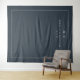 This elegant wedding backdrop features a minimalist design with a deep navy blue background, creating a sophisticated atmosphere. The layout includes clean lines and ample negative space, framed by a thin white border that adds structure. Customizable text elements are presented in bold serif fonts, allowing for personalization of names and dates. The overall style is modern and understated, perfect for formal occasions seeking a touch of refinement.