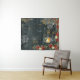 Elegante tapiz pintado con acuarela de fondo que mide 127 x 152 cm o menos. Este tapiz festivo presenta un bosque oscuro con escena invernal de bosque, ramas de poinsettias rojas, una linterna brillante y copos de nieve dorados.