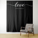 Personaliza este sencillo fondo de foto de boda elegante con el nombre de la novia y el novio. Fondo negro con letra blanca, "Amor" para la boda moderna.