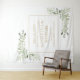 Un elegante telón de fondo para cabina de fotos de graduación que presenta vegetación en acuarela y los detalles del graduado en tipografía dorada. Diseñado por Thisisnotme©