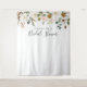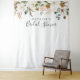 El elegante fondo de magnolias para la sesión de fotos de la ducha de la novia es perfecto para una ducha de boda moderna y elegante. El suave diseño floral presenta peonías rosadas de acuarela, flores de magnolia blancas impresionantes y algodón con hojas doradas y verdes en una disposición lujosa. Personalízalo con el nombre de la futura novia.
