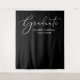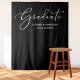 Elegante telón de fondo negro y fuente de fotos para tu fiesta de graduación con "Graduado" en una moda de escritura blanca moderna y el nombre del graduado y año de clase en una simple tipografía blanca moderna.
