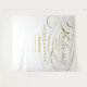 Tapiz de pared de bienvenida 50 Aniversario con texto de guión de hojalata dorada FAUX elegante. La palabra "bienvenida" es una IMAGEN producida para parecer que tiene un acabado de lámina gris metálico, pero está impresa con tinta plana y no se puede editar. Todo el texto restante se puede editar completamente. Elija su tamaño y personalice el texto, o haga clic en "Personalizar más" para cambiar el color de fondo y el tamaño o estilo de la fuente.
