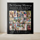 Tapiz conmemorativo negro elegante que celebra la vida y la época de un ser querido fallecido con "En amorosa memoria" en una elegante escritura blanca, una treintena de fotos en collage para conmemorar su vida, familia, mascotas, amigos, logros, viajes y alegrías, su nombre y fechas de nacimiento y muerte. Personalice las palabras de memorial en la parte inferior (inicialmente establecidas como "Tu vida fue una bendición, tu recuerdo es un tesoro. Eres amado más allá de las palabras y extrañado más allá de lo que se puede medir").