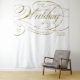 Pancarta única de bienvenida a la boda con texto de guión de falso foil dorado de lujo. La palabra "bienvenida" es una IMAGEN producida para que parezca que tiene un acabado de lámina dorada metálica, pero está impresa con tinta plana y no se puede editar. Todo el texto restante se puede editar completamente. Haga clic en "Personalizar más" para cambiar el color de fondo y el tamaño de fuente, la curvatura o el estilo.
