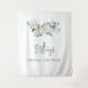 Elegante Winter Greenery Foliage Calligraphy Script Bridal Shower Photo Backdrop o Welcome Tapestry - elementos de texto completamente personalizable para que se ajusten a su evento boda.
