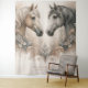 Un escenario especial boda con dos elegantes caballos en una decoración. Agregue el texto deseado al fondo. Parte de la colección Love for Horses Design. Utilice la plantilla para crear su propio fondo de boda.