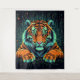 Ein majestätischer Tiger in leuchtenden Neon-Orange- und Blautönen auf schwarzem Hintergrund. Dieses Bild vereint natürliche Stärke mit einem futuristischen Glühen, das die wilde Kraft und Eleganz des Tigers eindrucksvoll einfängt. Perfekt für moderne Kunstliebhaber, die das Ursprüngliche und das Außergewöhnliche schätzen.