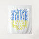Tapiz Emblema ucraniano trident tryzub esparce corazones