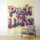 Esta impresionante tapicería presenta un vibrante fondo amarillo y cremoso, creando una atmósfera brillante e invitante. La frase motivadora "Push The Limits" se muestra en una tipografía moderna y llamativa que se asemeja al neón, con letras cuadradas y vidriosas que parecen dimensionales y coloridas. Las letras transparentes y en negrita resaltan contra el fondo, creando un contraste llamativo que atrae la atención e inspira la acción.