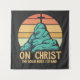 En Cristo la Roca Sólida que sostengo, este diseño cristiano presenta una mirada de puesta de sol de Reto con una cruz cristiana y un texto que dice: "En Cristo la Roca Sólida que yo sostengo".