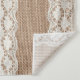 El encaje blanco sobre arpillera marrón evoca romance rústico y nostalgia.