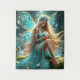 A luminous forest fairy sits gracefully on mossy ground, her flowing turquoise gown and shimmering wings glowing with tiny lights as butterflies dance around her. This magical artwork brings a sense of serenity, wonder, and fantasy to any wall.