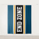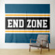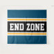 Este diseño deportivo, atlético, presenta texto en negrita END ZONE dentro de una franja negra ancha realzada con doble franjas de carreras blancas y amarillas contra verde azuladas franjas exteriores azules. El texto de este diseño se puede personalizar.
