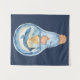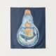Watercolor Ocean Scene in Light bulb Whale Boat Tapestry, pared colgada. Escena fantasiosa pintada dentro de una bombilla de un bote en el océano con un corazón por debajo de eso y una ballena por debajo. El fondo del tapiz es el azul más oscuro en el diseño de la bombilla y complementa bien el diseño. Si lo desea, puede cambiar ese color de fondo.