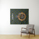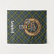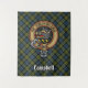 Insignia de Campbell escudo rodeada de una correa y hebilla sobre fondo tartán. Texto personalizado.