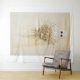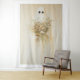 La imagen representa un cuadro minimalista de una figura fantasmal envuelta en una sábana blanca con dos ojos oscuros y huecos. El fantasma tiene un gran ramo de flores silvestres exuberante que contrasta con la sencillez de la apariencia del fantasma. El fondo es de un beige suave y cremoso, destacando el carácter delicado y surrealista de la escena. Las obras de arte combinan lo misterioso con lo caprichoso, creando un ambiente intrigante y tranquilo.
