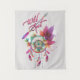 Este Tapiz Único "Uno de bondad"...¡es para el Chica salvaje del corazón! Un bonito Arrow & Dream Catcher se esconde entre las plumas turquesa, Naranja, rosa y morada con la cita...¡Espíritu salvaje! Diseño original de arte gráfico por el artista Kerry Miller.