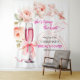 Un diseño elegante con una copa de champán, cintas rosas y escritura moderna. Puedes personalizar esto con tus detalles.