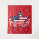 Bandera americana en forma de estrella. el fondo es rojo con estrellas pequeñas. Feliz 4 de julio