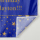 Haz que la celebración del cumpleaños de alguien sea verdaderamente especial con nuestra "Alfombra de cumpleaños azul con estrellas doradas y mensaje con foto". Es una obra maestra personalizada que captura la esencia de tu gran día. Cuenta con un fondo de estrellas doradas con un fondo azul y bordes dorados que lo hacen lucir elegante y sofisticado. Deja que esta alfombra sea el centro de tu celebración de cumpleaños. Personalízala con tu mensaje y foto, ¡ordenar hoy mismo!