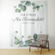 Eucalipto Futuro Señora Telón de Fondo para Cabina de Fotos. Gran decoración de pared para fiesta y pancarta para una ducha de novia botánica moderna y elegante. Con eucalipto verde y fondo de acuarela rosado. Cambie fácilmente los detalles haciendo clic en el botón "Personalizar" arriba.