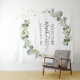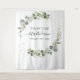 Eucalipto Botánico Verdor y Hoja Dorada Falsa Aquarela Primavera o Verano Boda Futuro Sra. Ducha de Novia Telón de Fondo para Cabina de Fotos - incluye hermosa y elegante tipografía de guión con follaje de vegetación moderno para la celebración especial del día de la boda.
